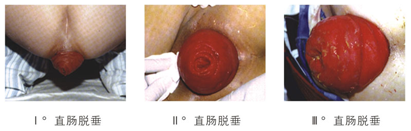 在临床上,脱肛按脱垂程度轻重分成三度:一度为直肠黏膜脱出,二度为直肠全层脱出,三度为直肠及乙状结肠脱出。